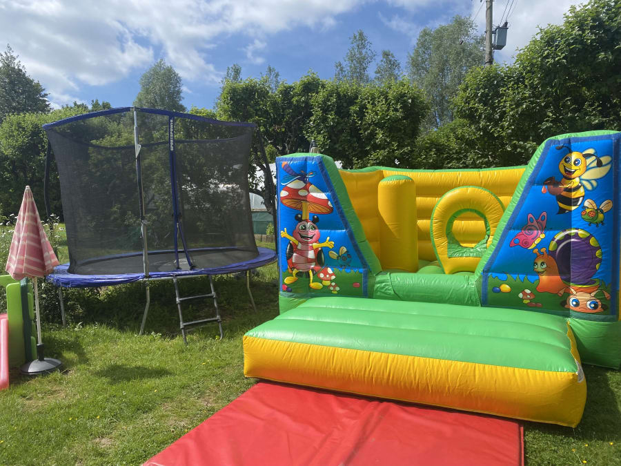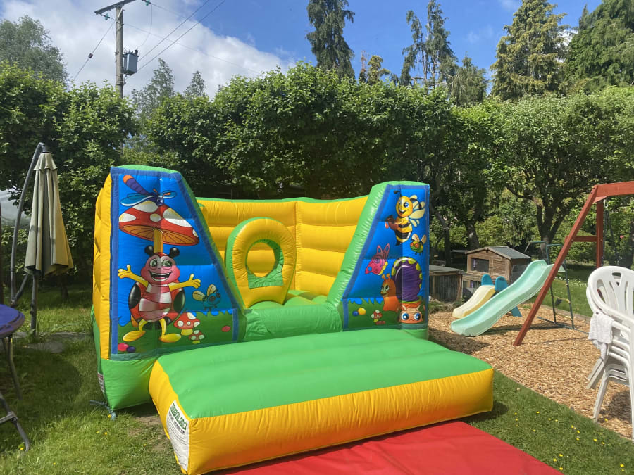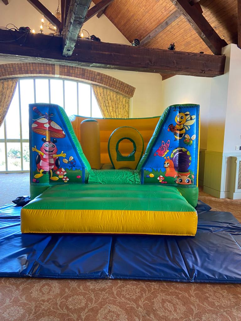 Bounce-A-Roo proudly present our 'Bug Hotel' tots bouncy castle. It has a column to push and jump on and a crawl through hoop.