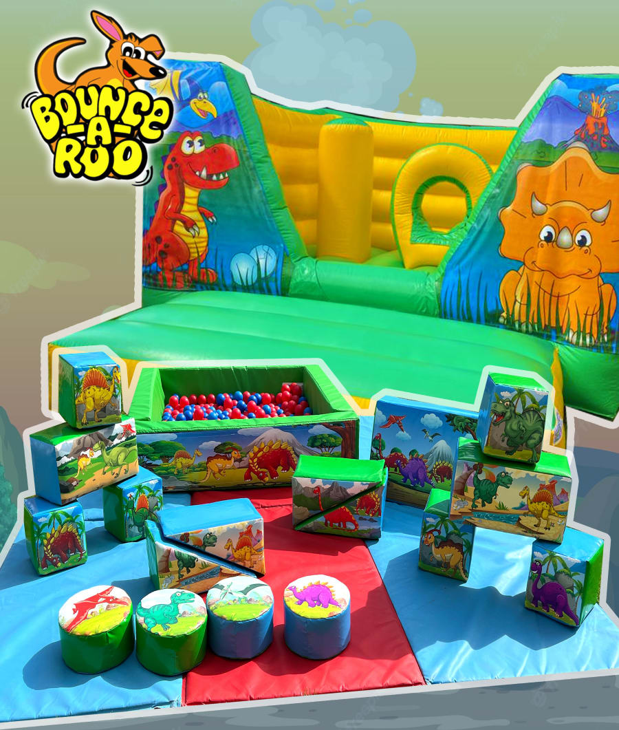 This fun Dinosaur bouncy castle and soft play package has been designed especially for those ROARsome birthday parties, the artwork is REXcellent and you really will think the Dinos are coming to life as you bounce up and down.